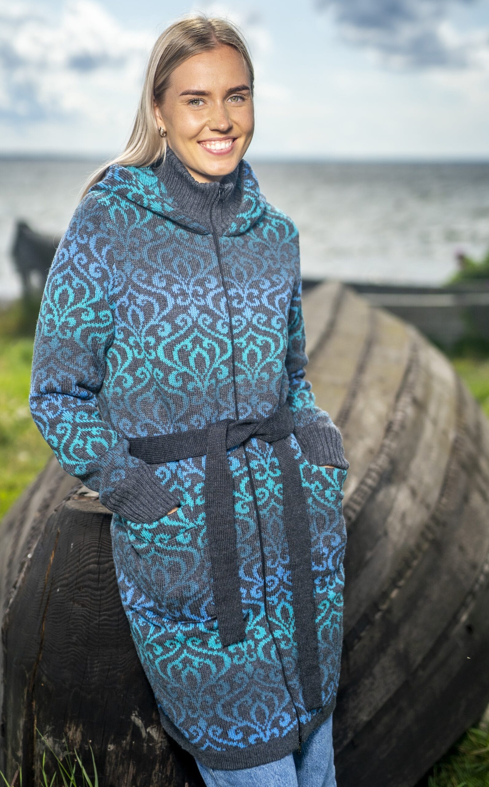 Mõnusalt pikk ja soe villane kardigan, mida kevadest sügiseni saad kanda kui mantlit ja külmade ilmadega panna soojenduseks mantli alla.