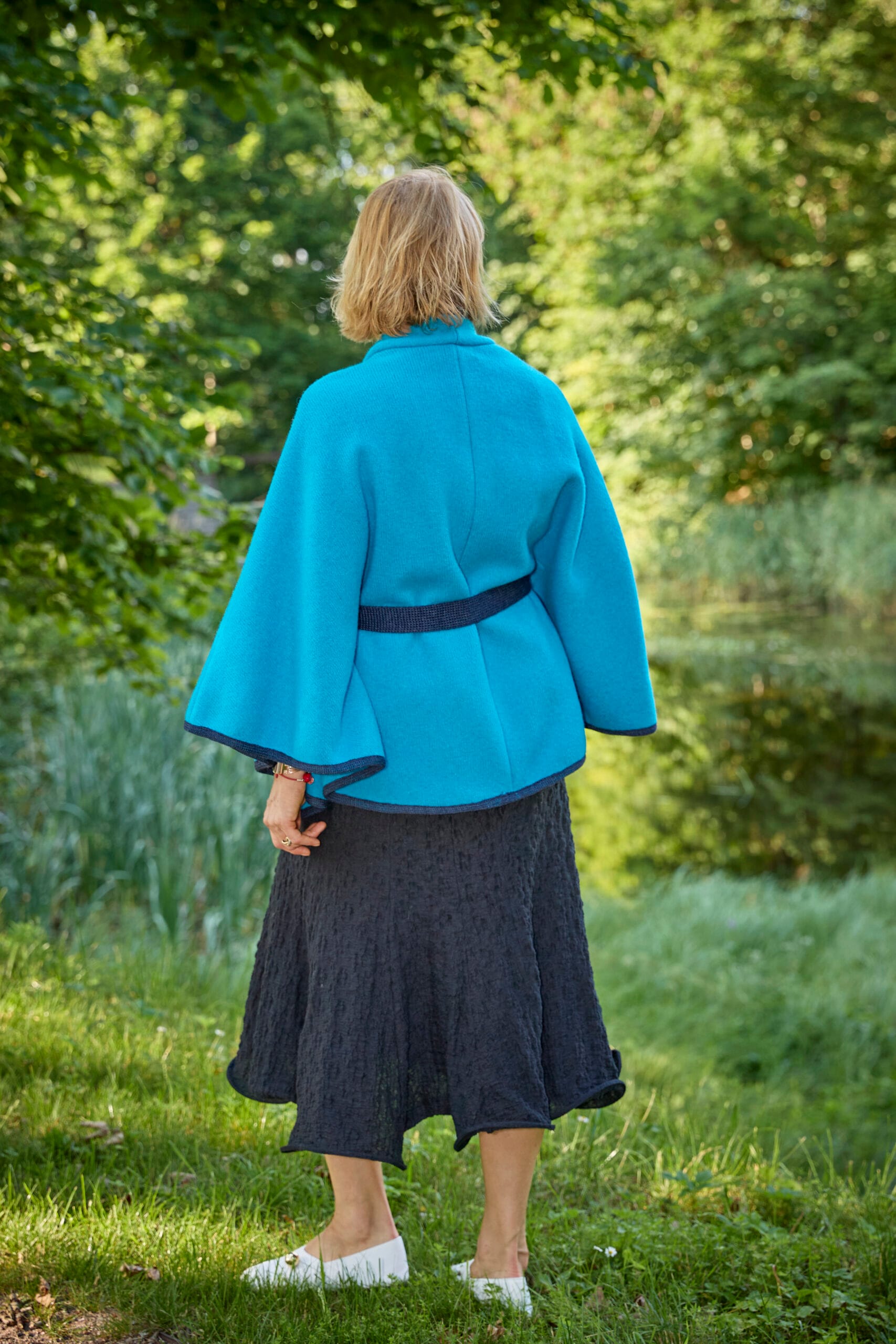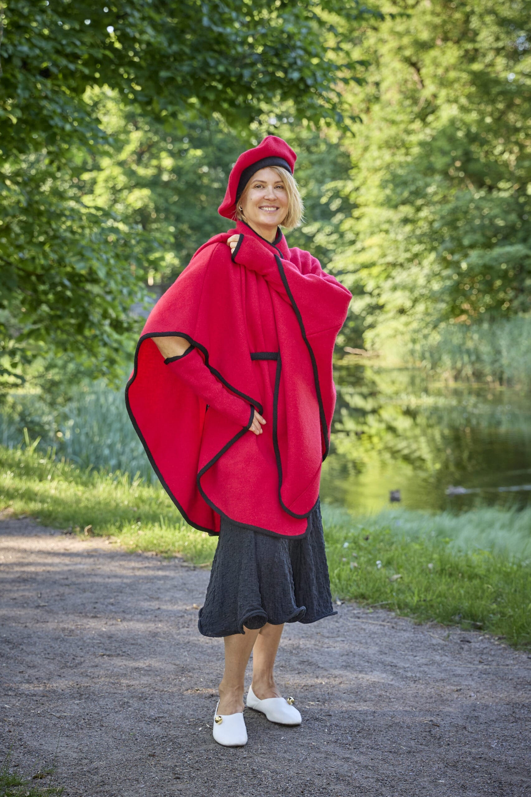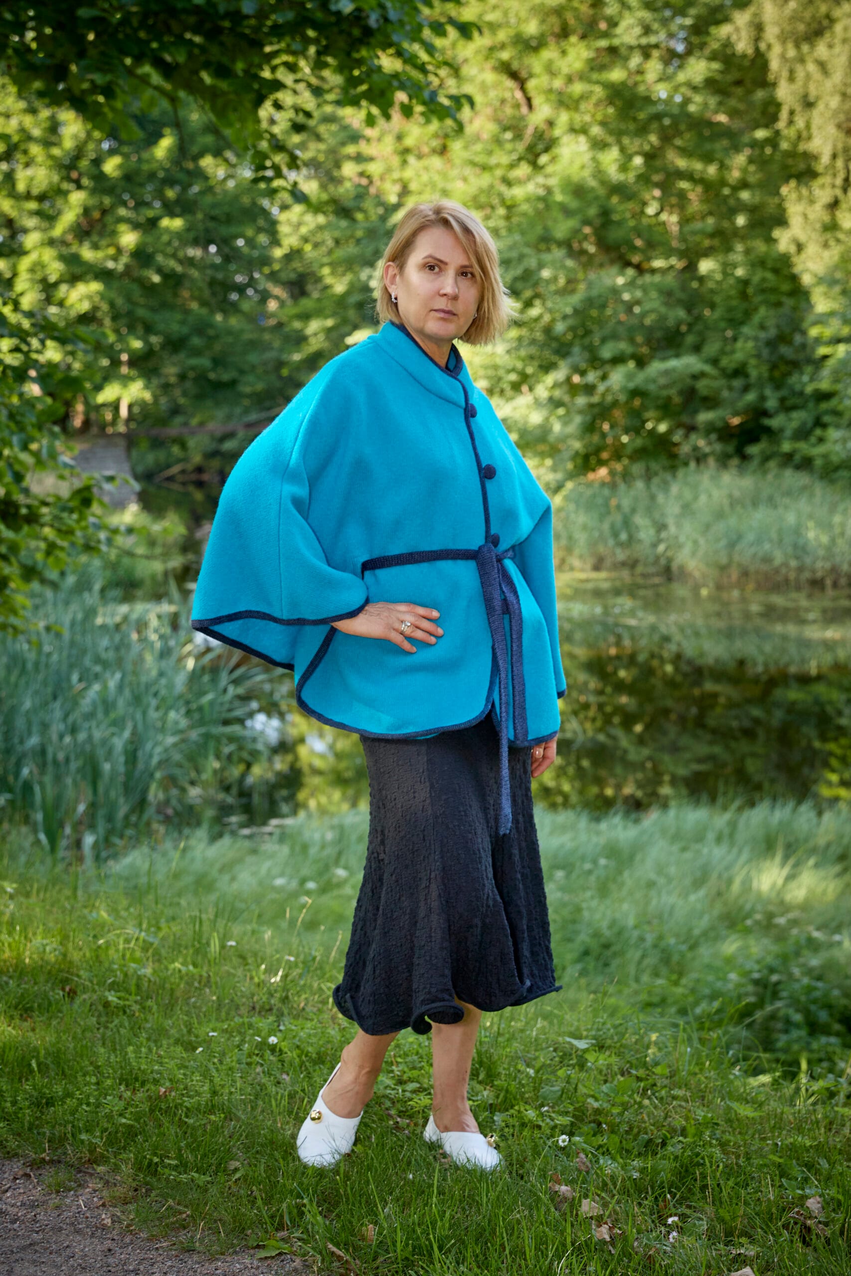 Elegantselt ajatu ja praktiline poncho, mis on valmistatud käsitööna kvaliteetsest villast. Soojust ja mugavust pakkuv rõivas sobib nii igapäevaseks kandmiseks kui ka pidulikemaks hetkedeks.