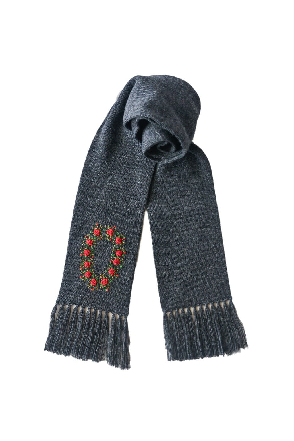 Elegantne ja mugav villane kahekordne sall, mis on kaunistatud klassikalise rokokoo tikandiga.